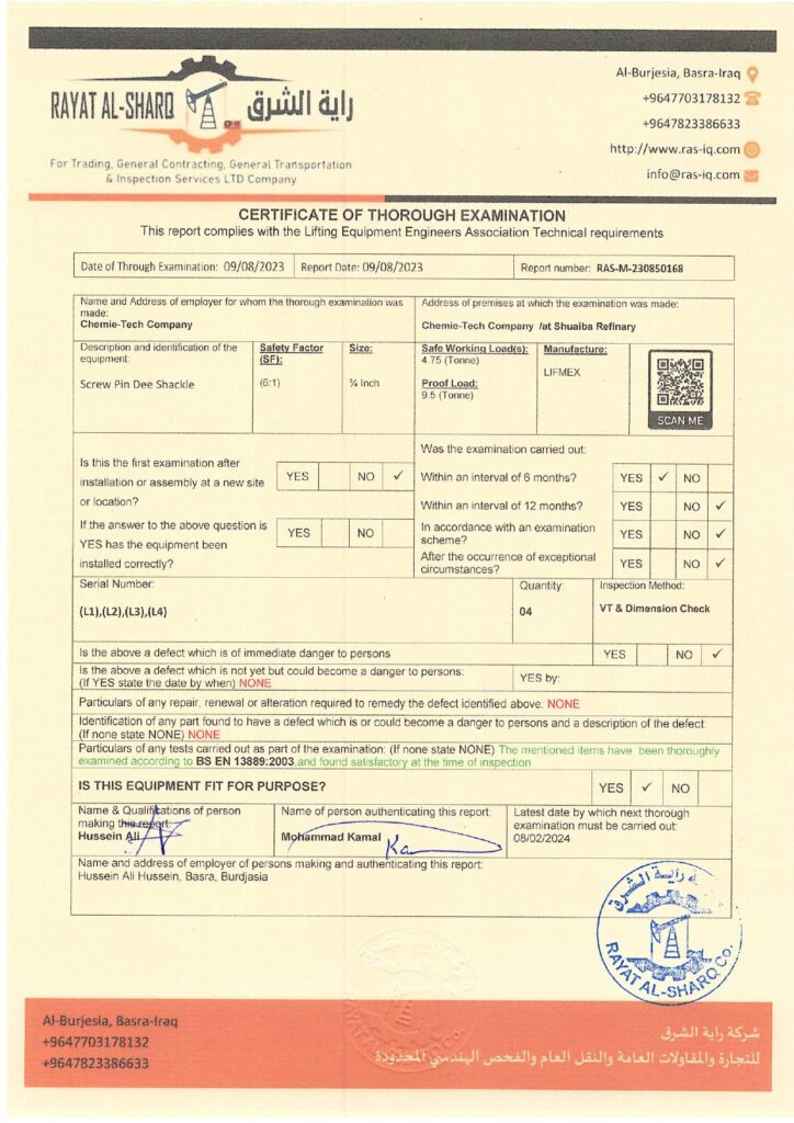 LIFTING INSPECTION
