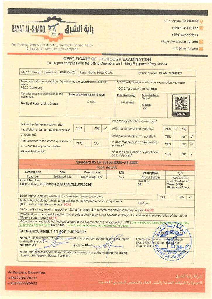 LIFTING INSPECTION