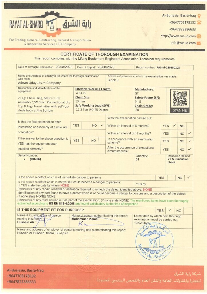 LIFTING INSPECTION