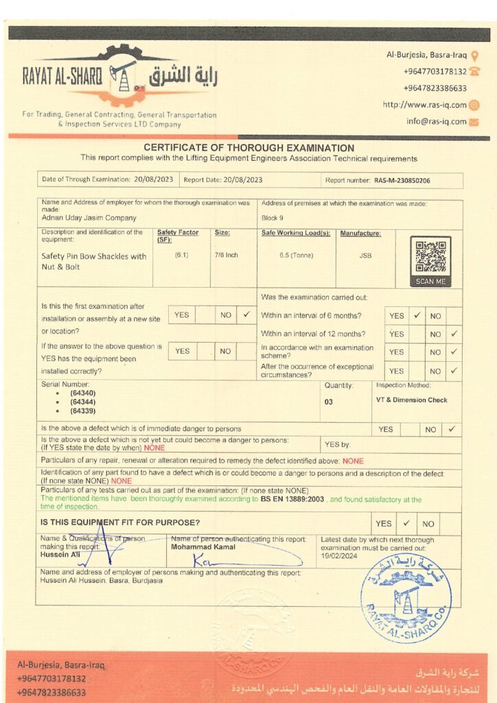 LIFTING INSPECTION