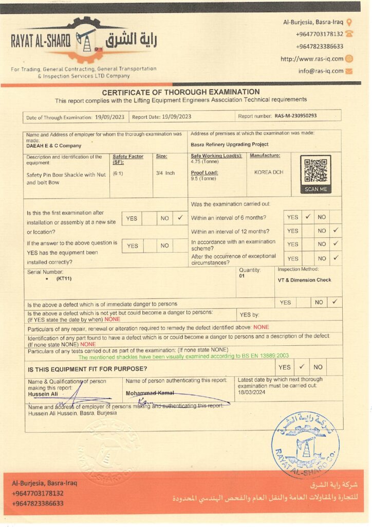 LIFTING INSPECTION