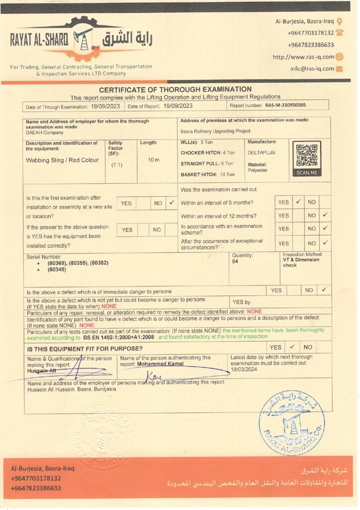 LIFTING INSPECTION