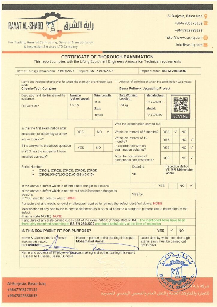 LIFTING INSPECTION