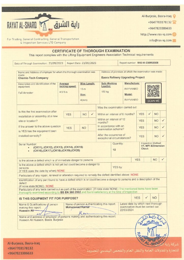 LIFTING INSPECTION
