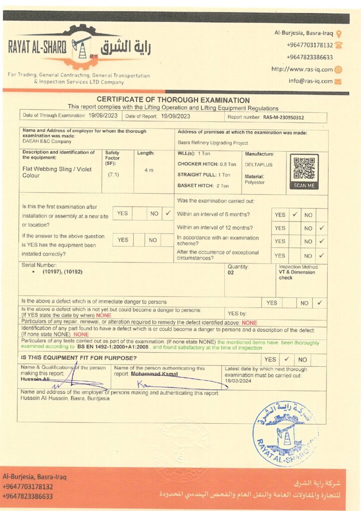 LIFTING INSPECTION