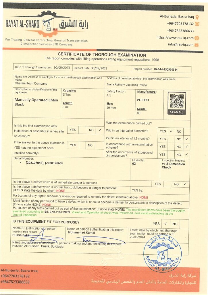 LIFTING INSPECTION