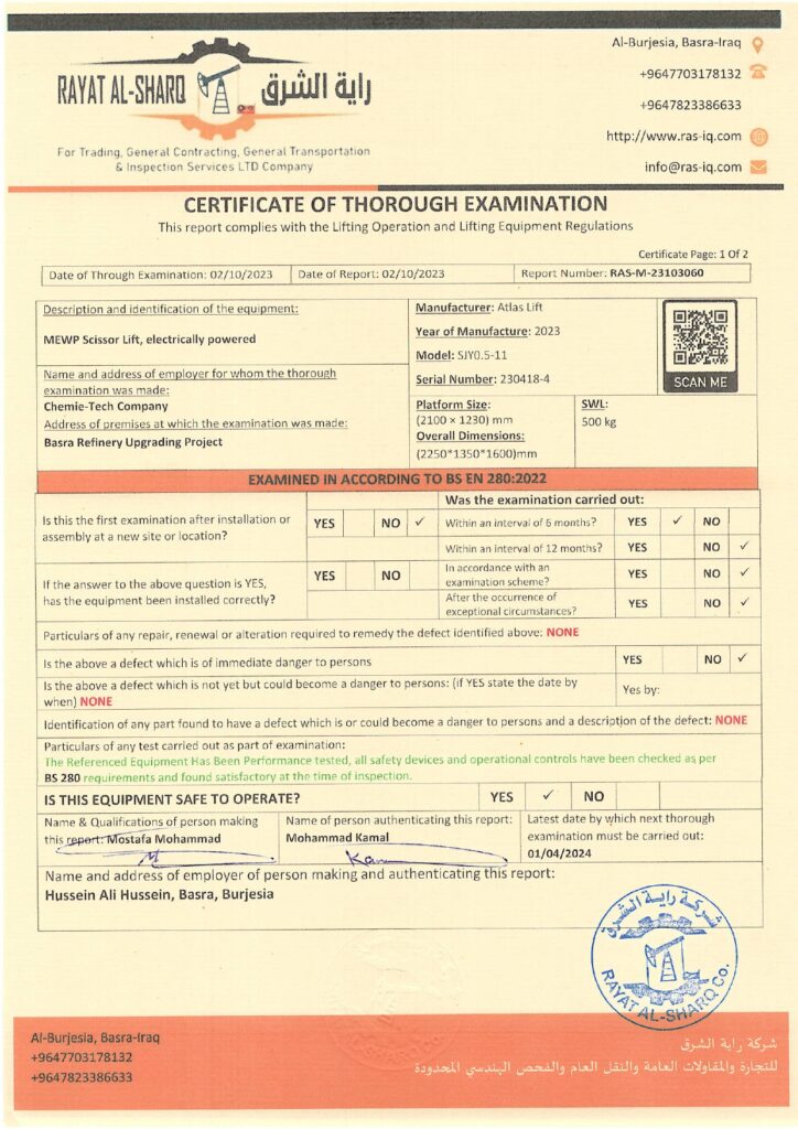 LIFTING INSPECTION