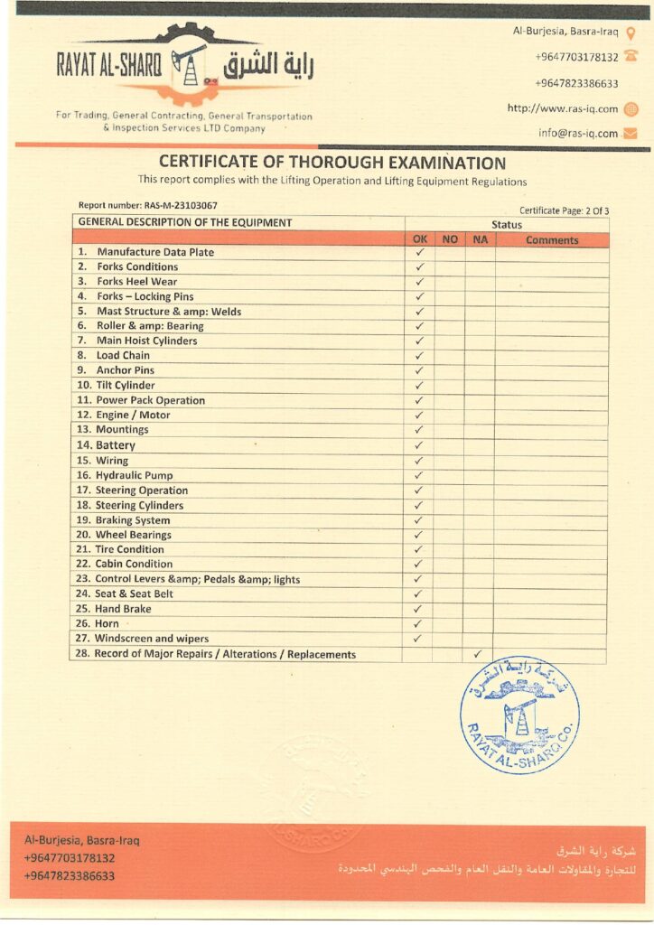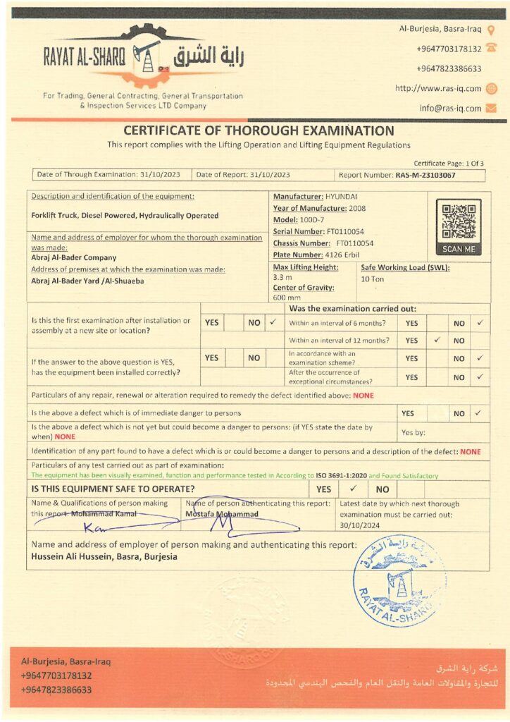LIFTING INSPECTION