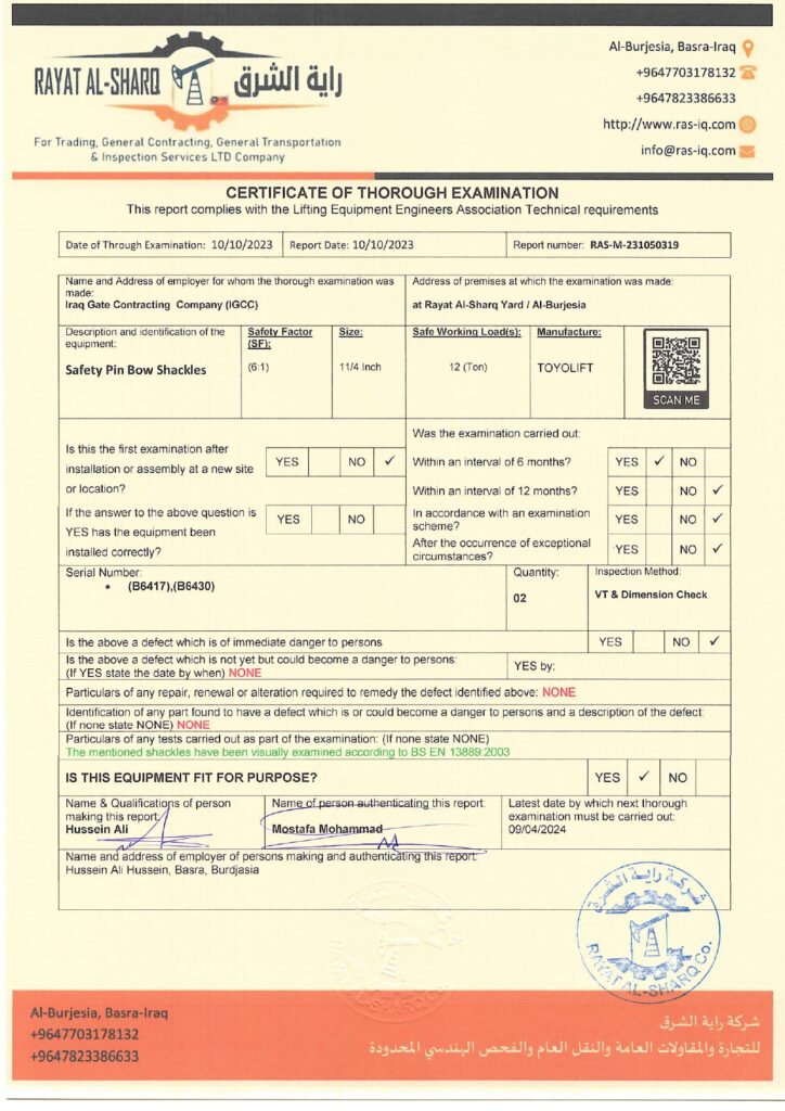 LIFTING INSPECTION