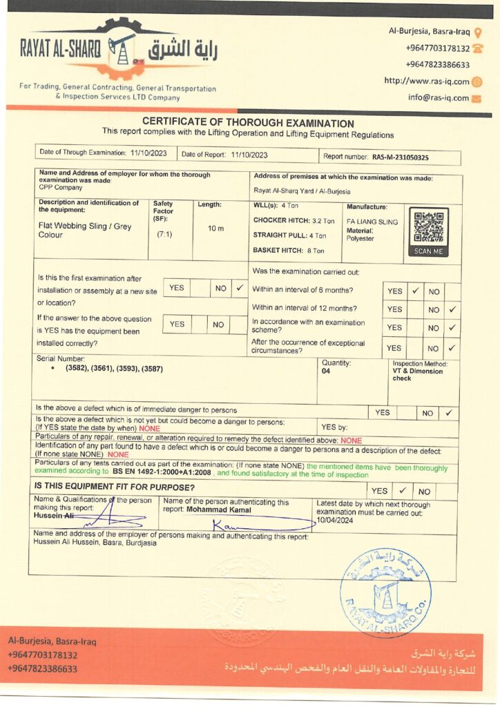 LIFTING INSPECTION