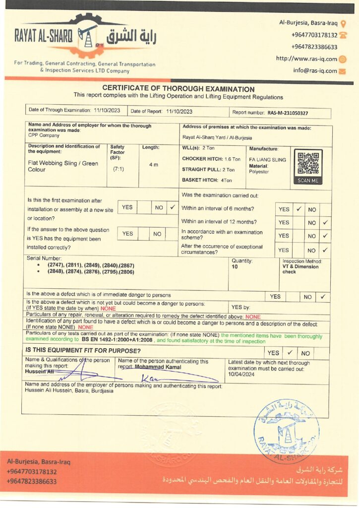 LIFTING INSPECTION