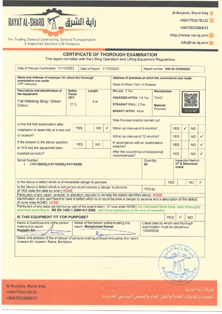 LIFTING INSPECTION