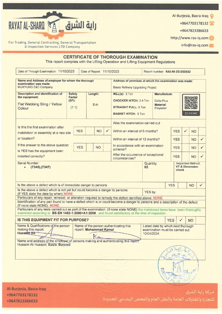 LIFTING INSPECTION