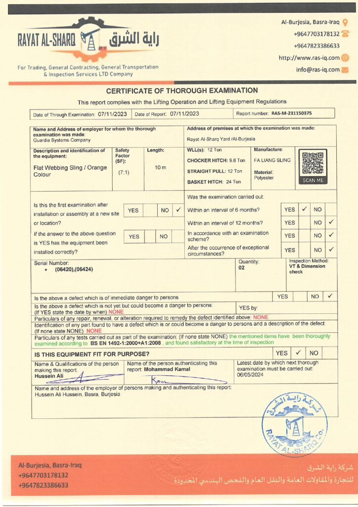 LIFTING INSPECTION