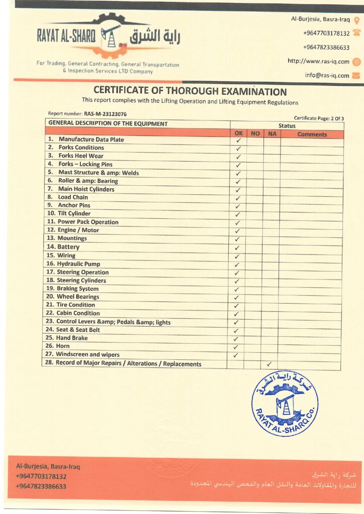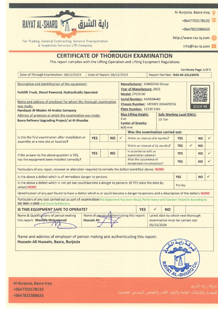 LIFTING INSPECTION