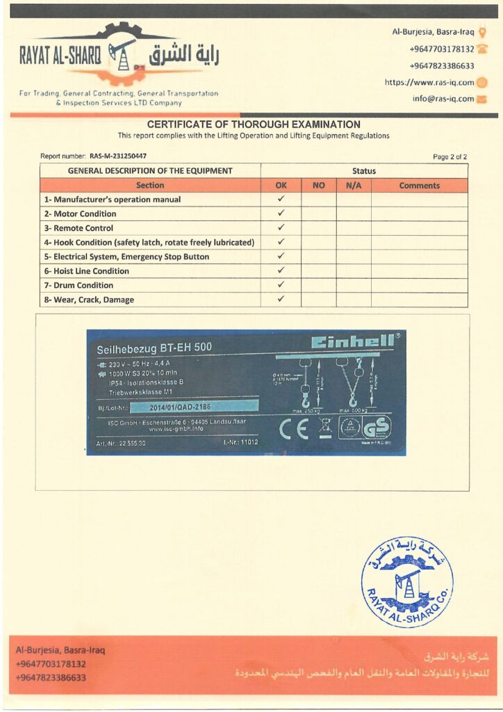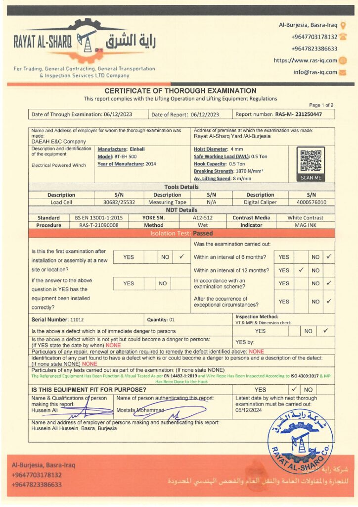 LIFTING INSPECTION