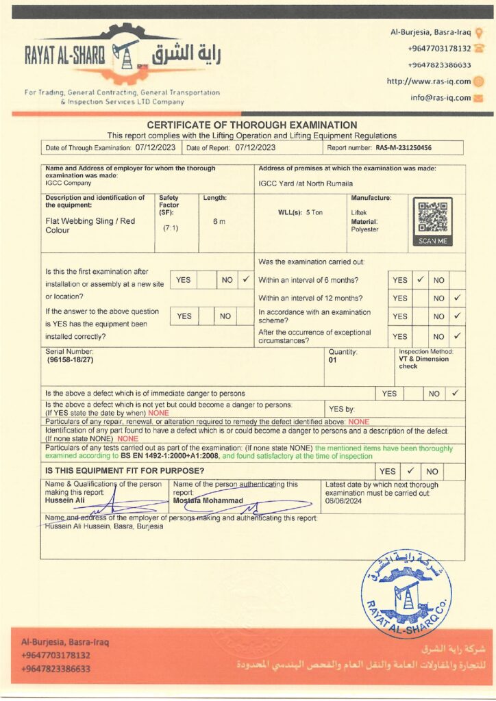 LIFTING INSPECTION