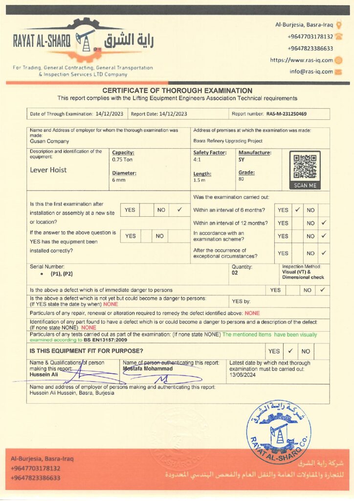 LIFTING INSPECTION