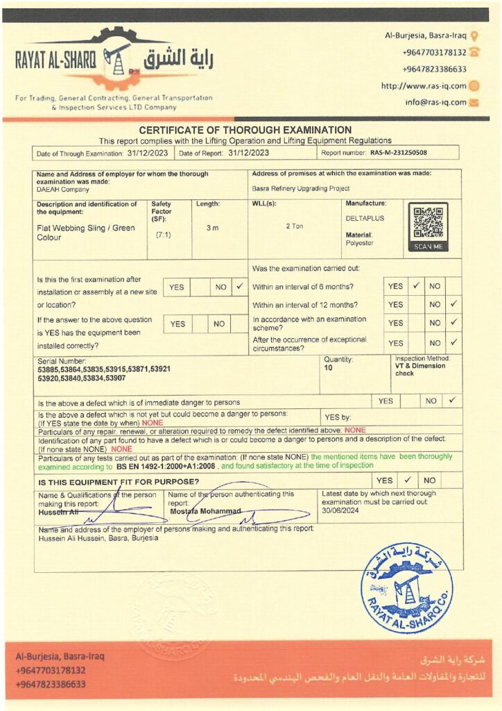 LIFTING INSPECTION