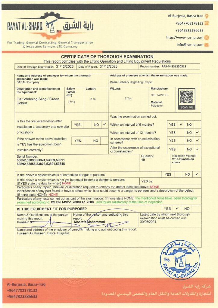 LIFTING INSPECTION