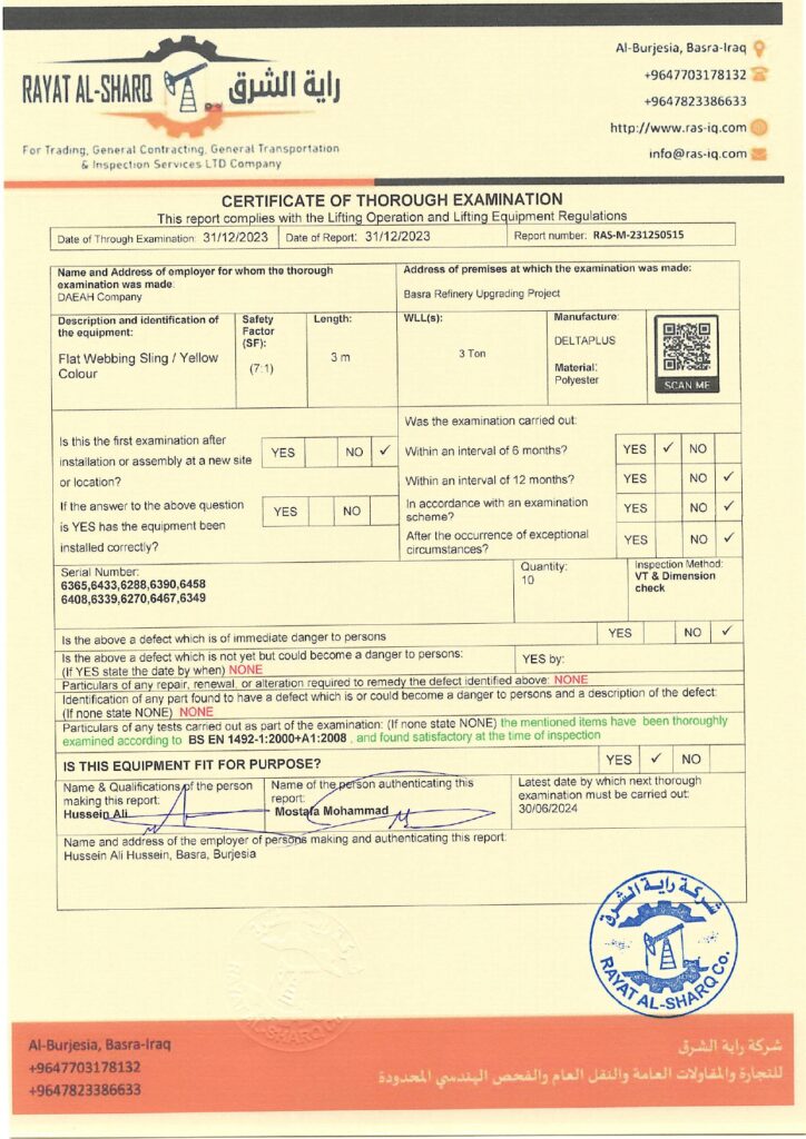 LIFTING INSPECTION