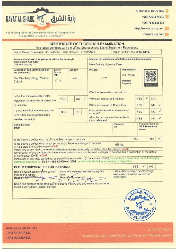 LIFTING INSPECTION