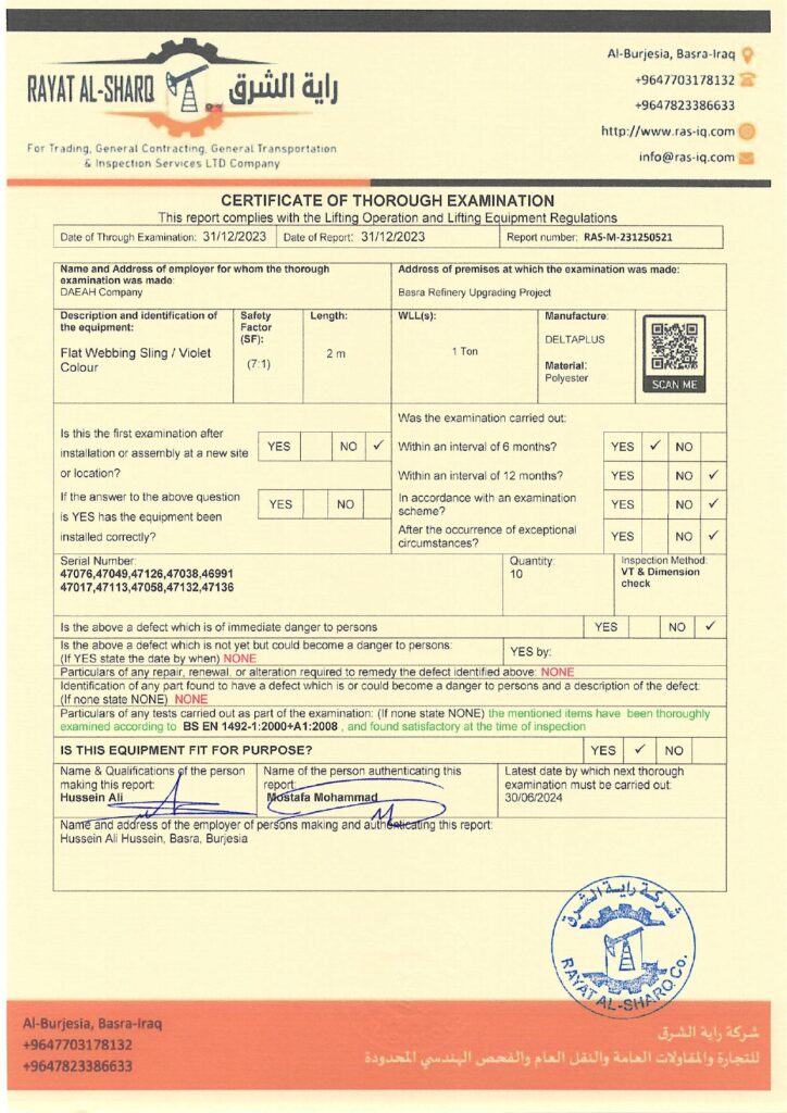 LIFTING INSPECTION