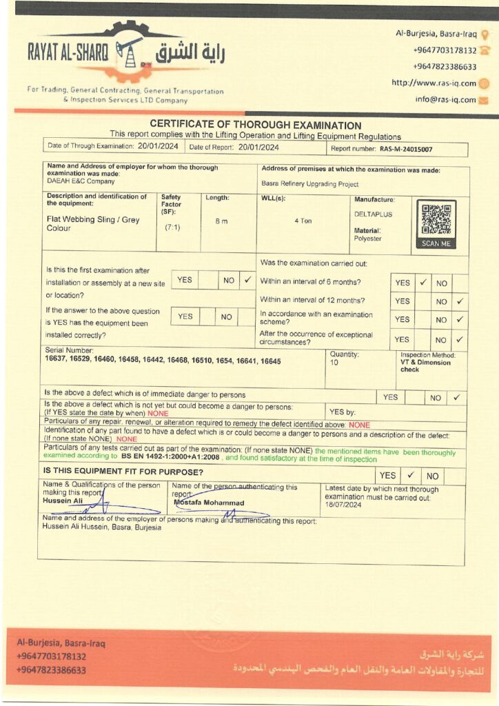 LIFTING INSPECTION