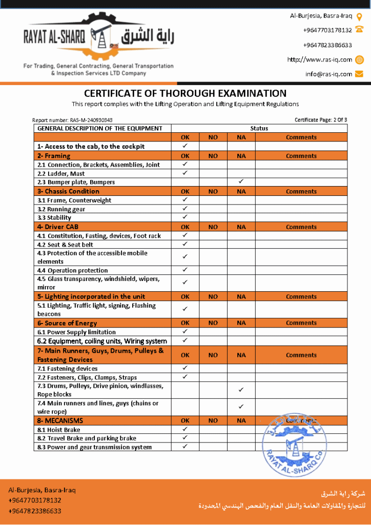 LIFTING INSPECTION