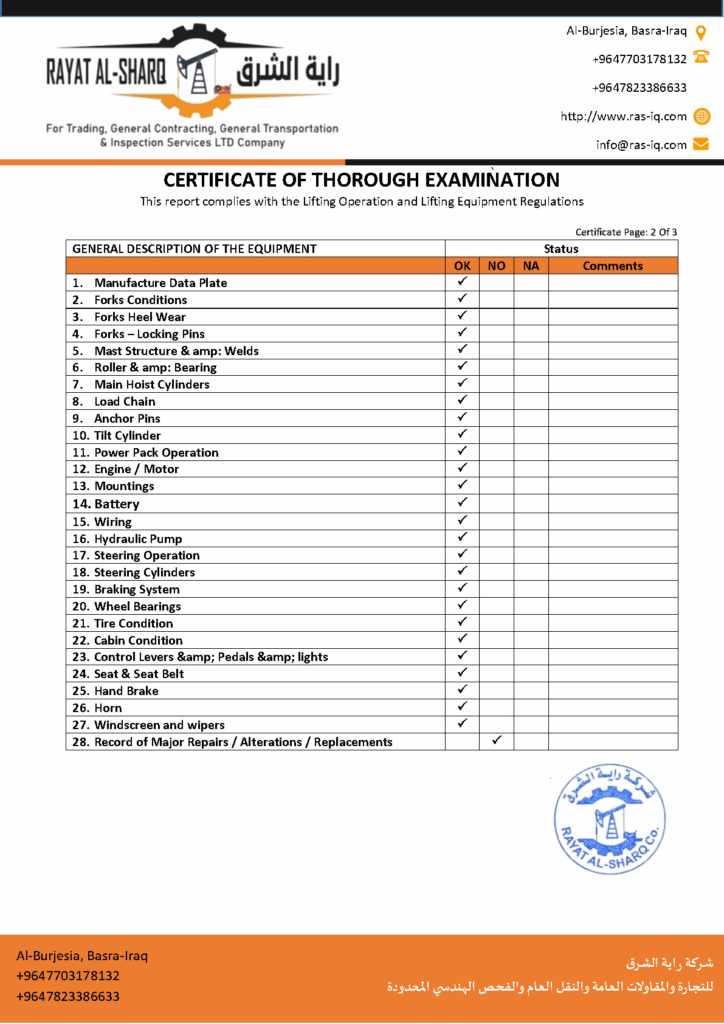 LIFTING INSPECTION