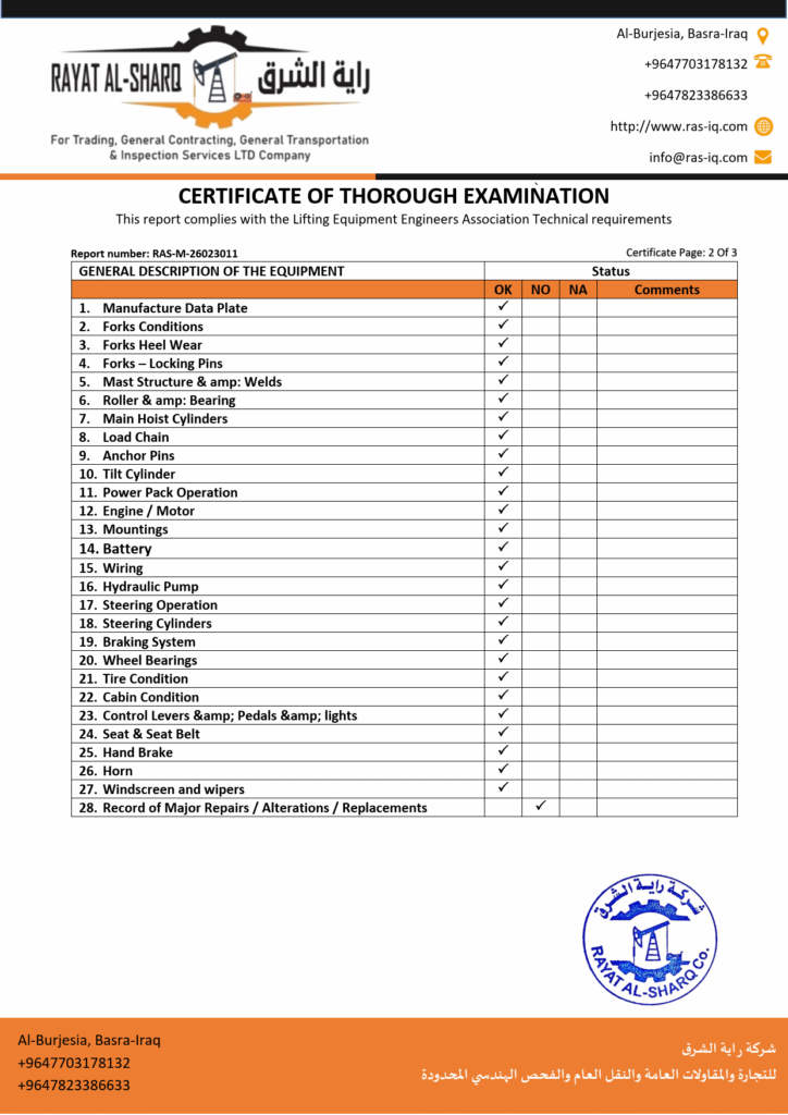 LIFTING INSPECTION