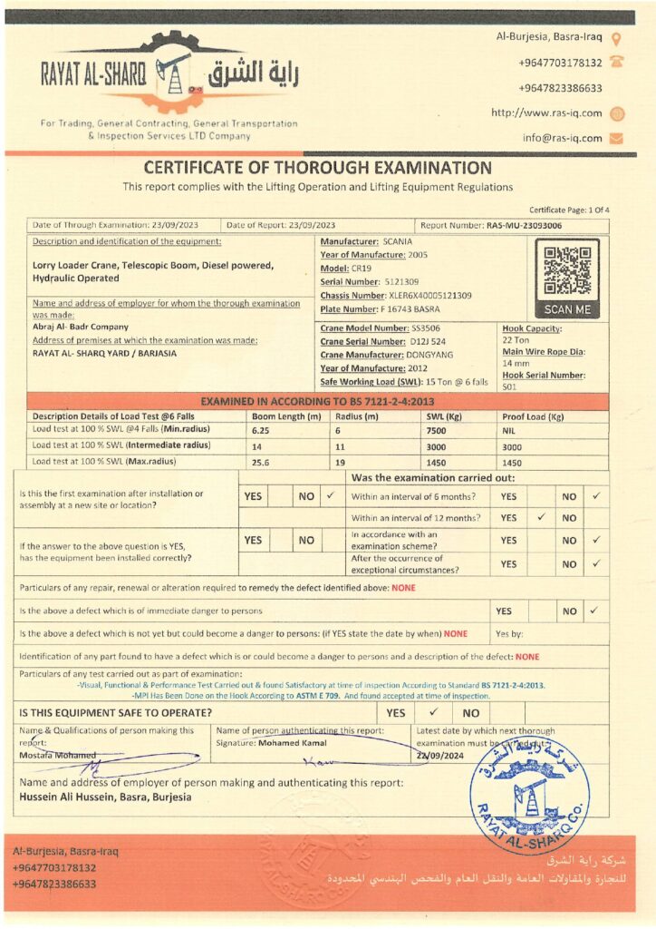 LIFTING INSPECTION