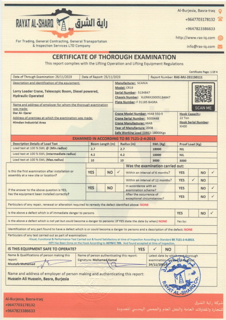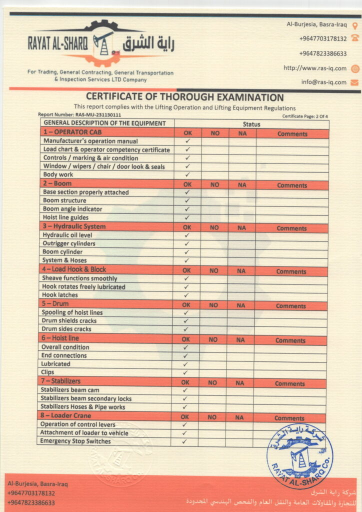 LIFTING INSPECTION