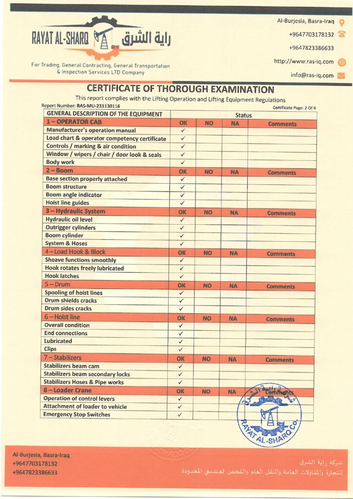LIFTING INSPECTION