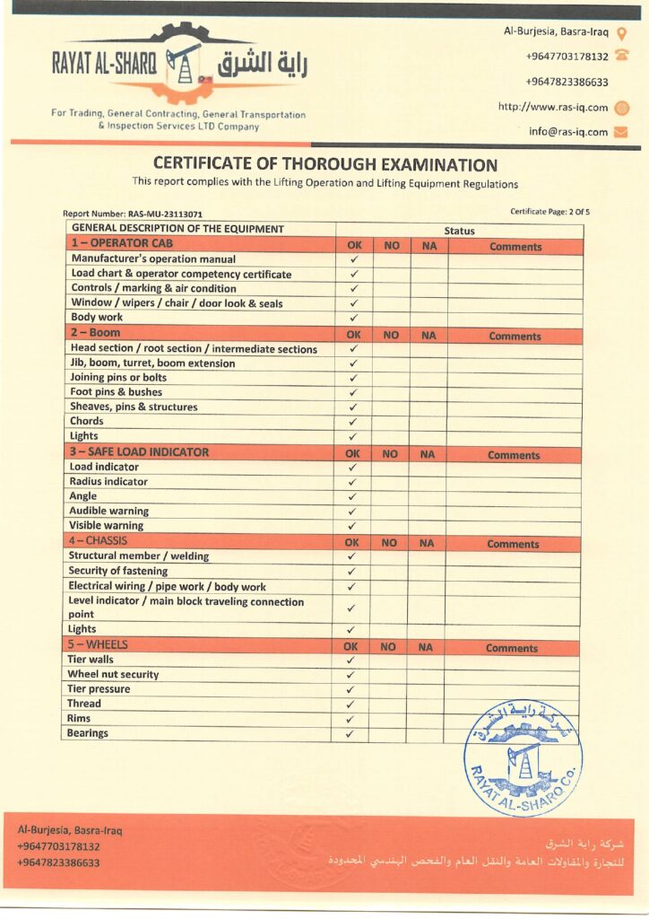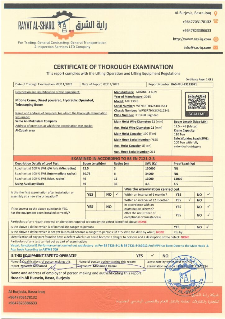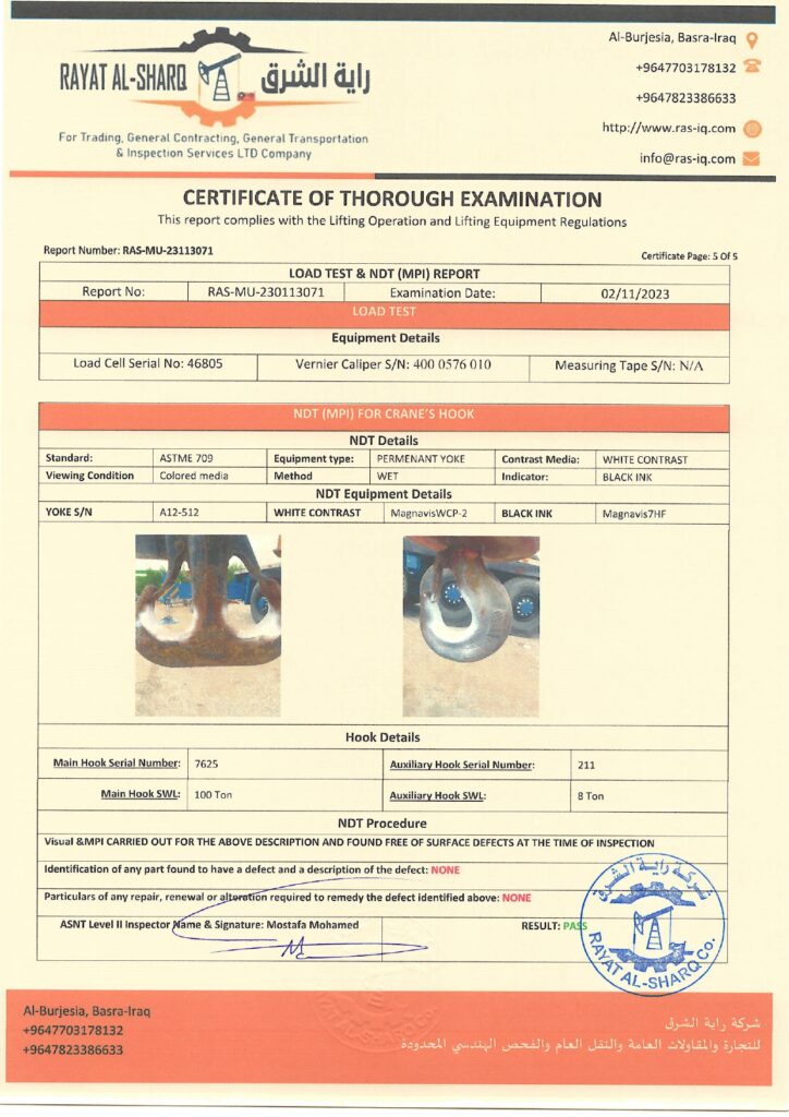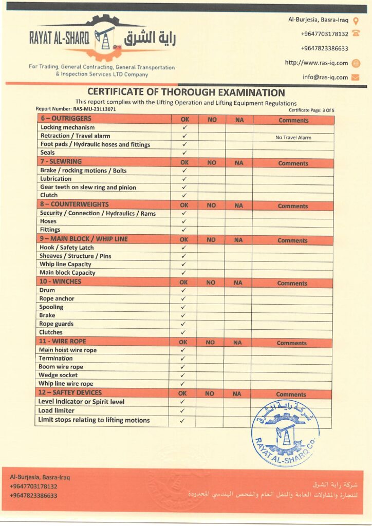 LIFTING INSPECTION