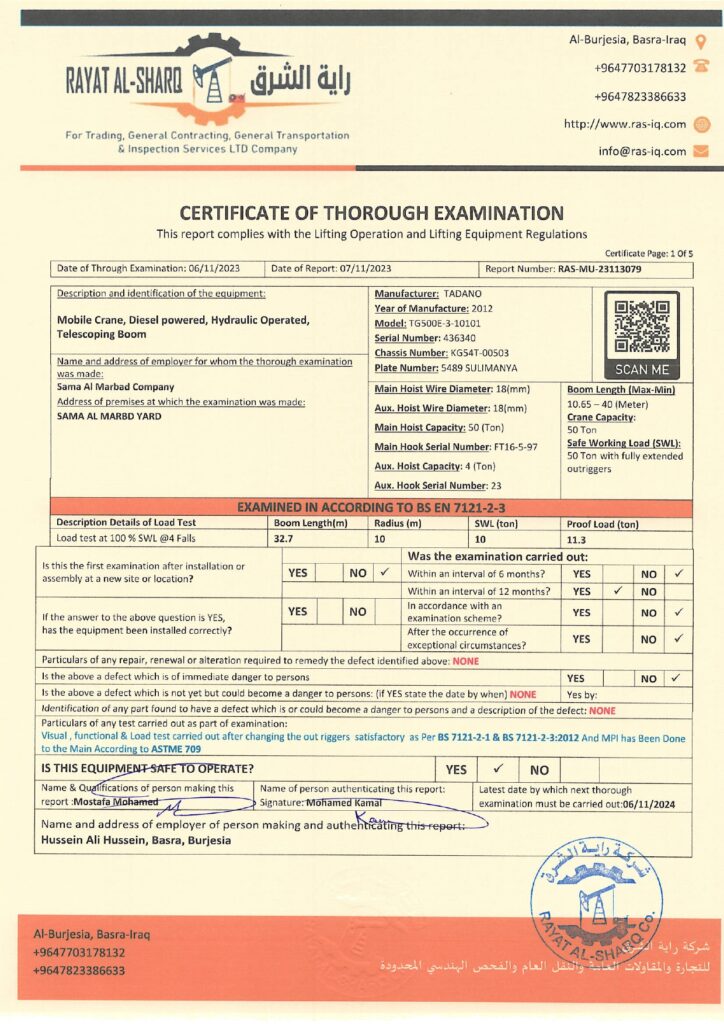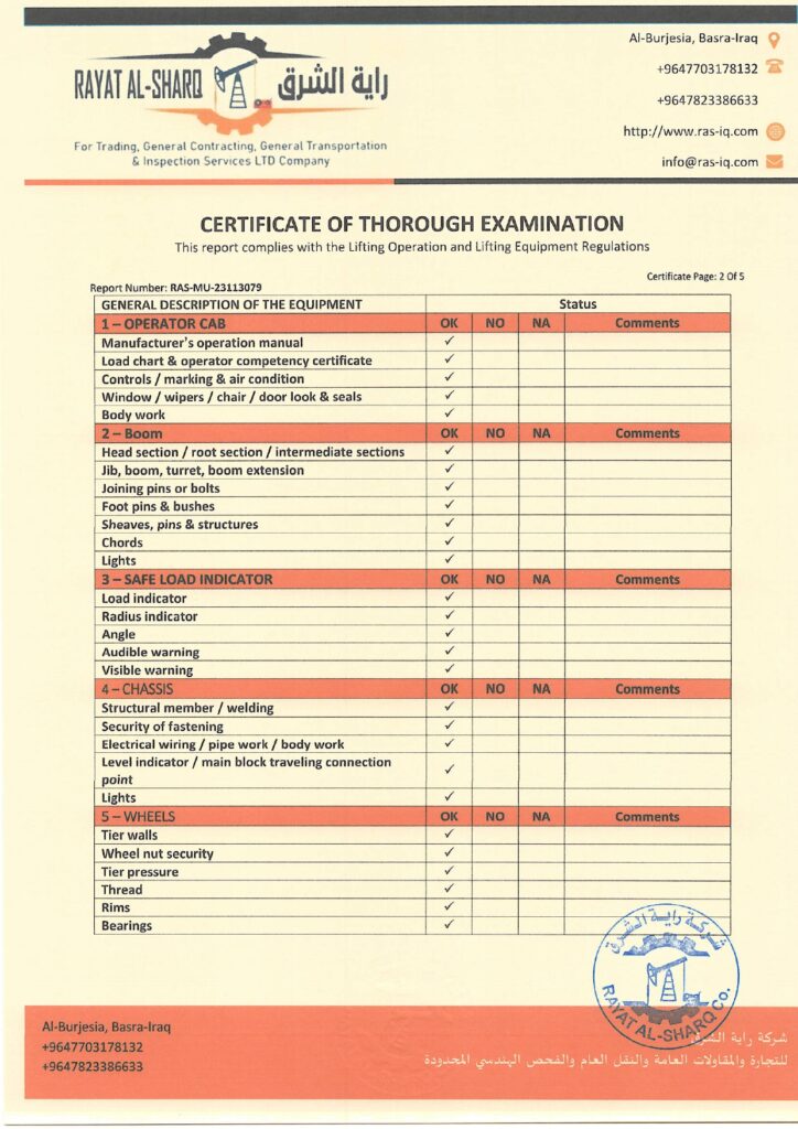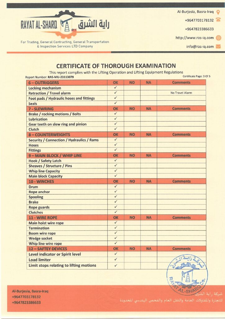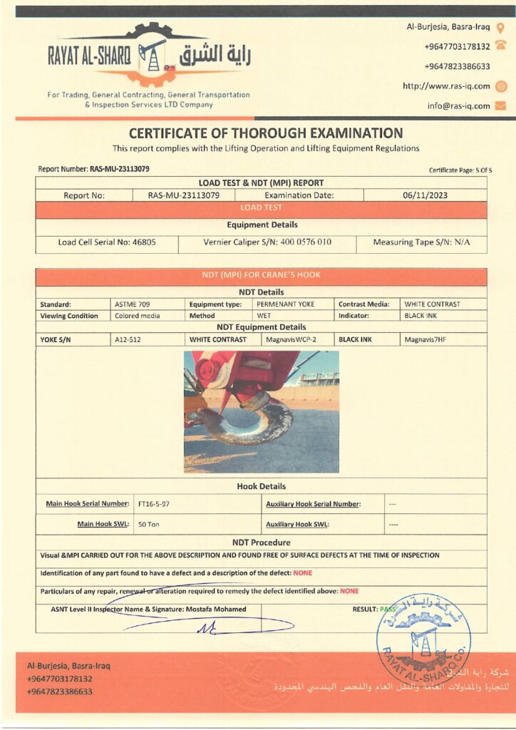 LIFTING INSPECTION