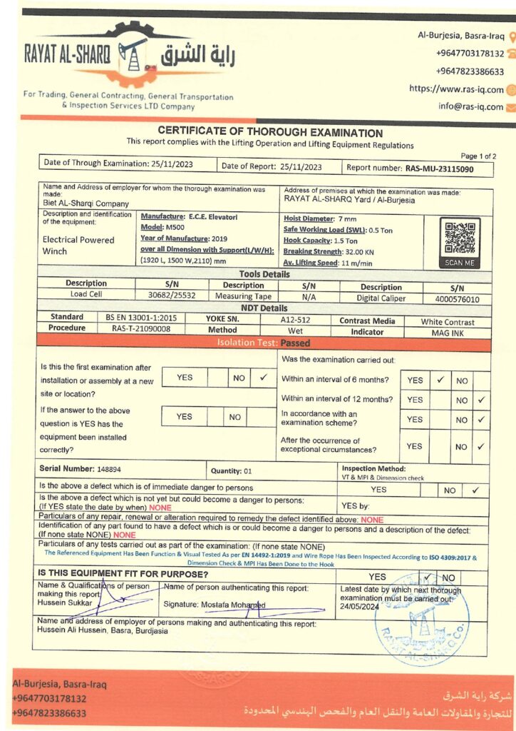 LIFTING INSPECTION