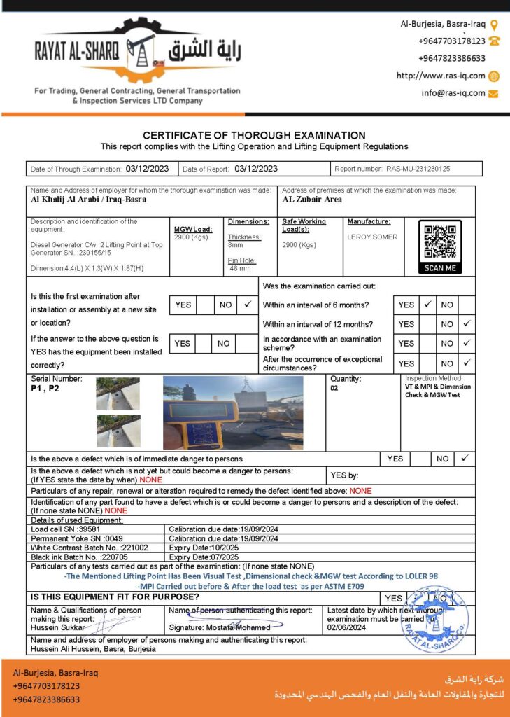 LIFTING INSPECTION
