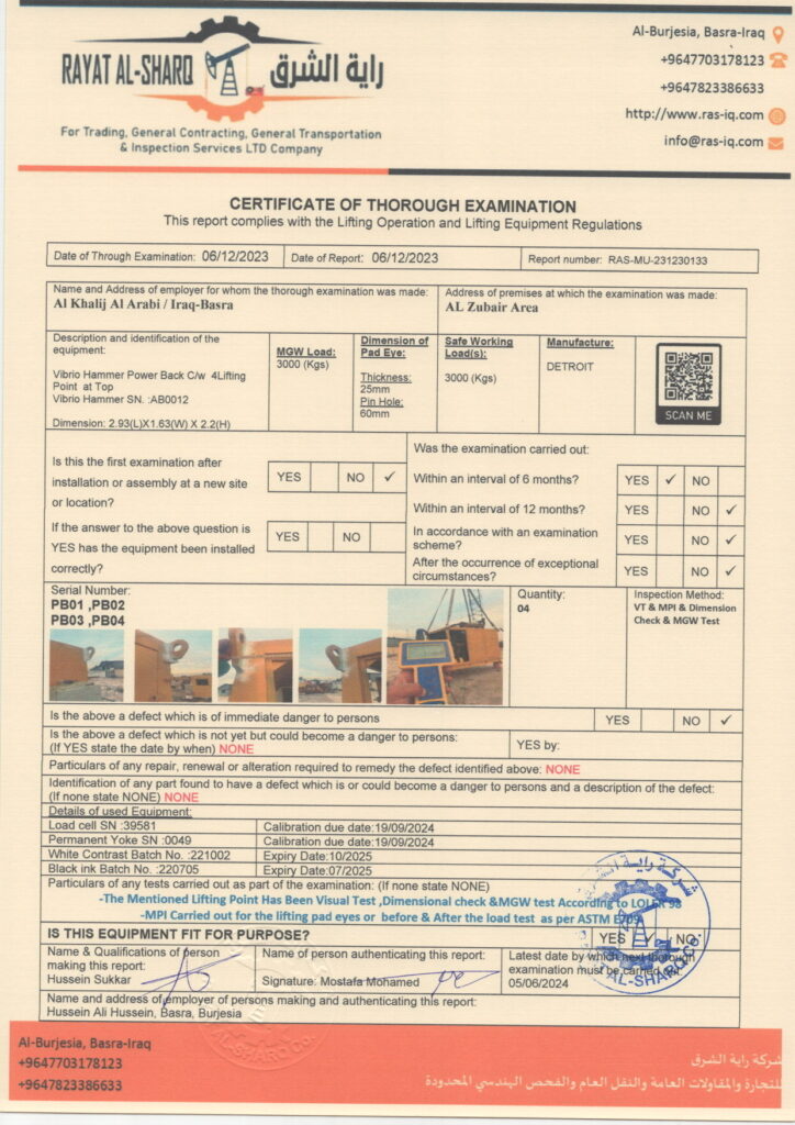 LIFTING INSPECTION