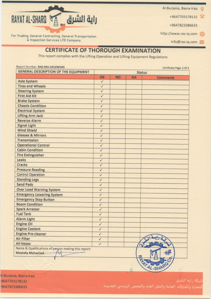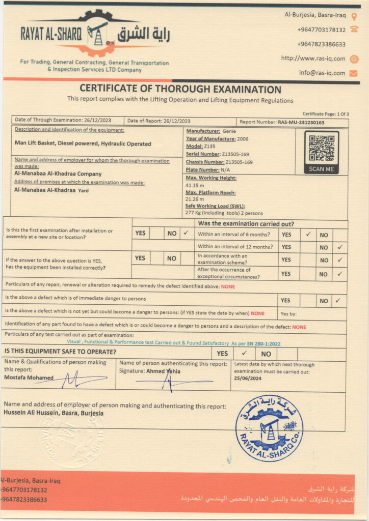 LIFTING INSPECTION
