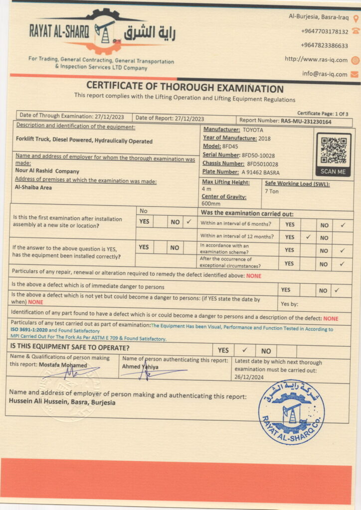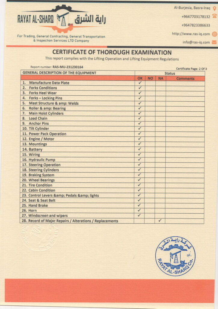 LIFTING INSPECTION