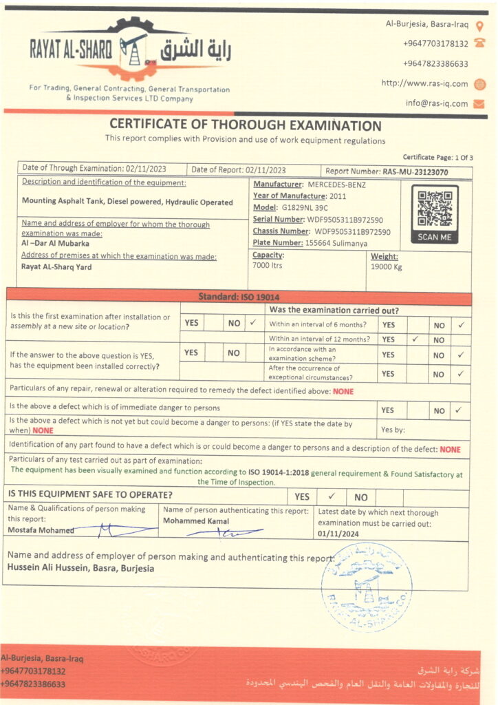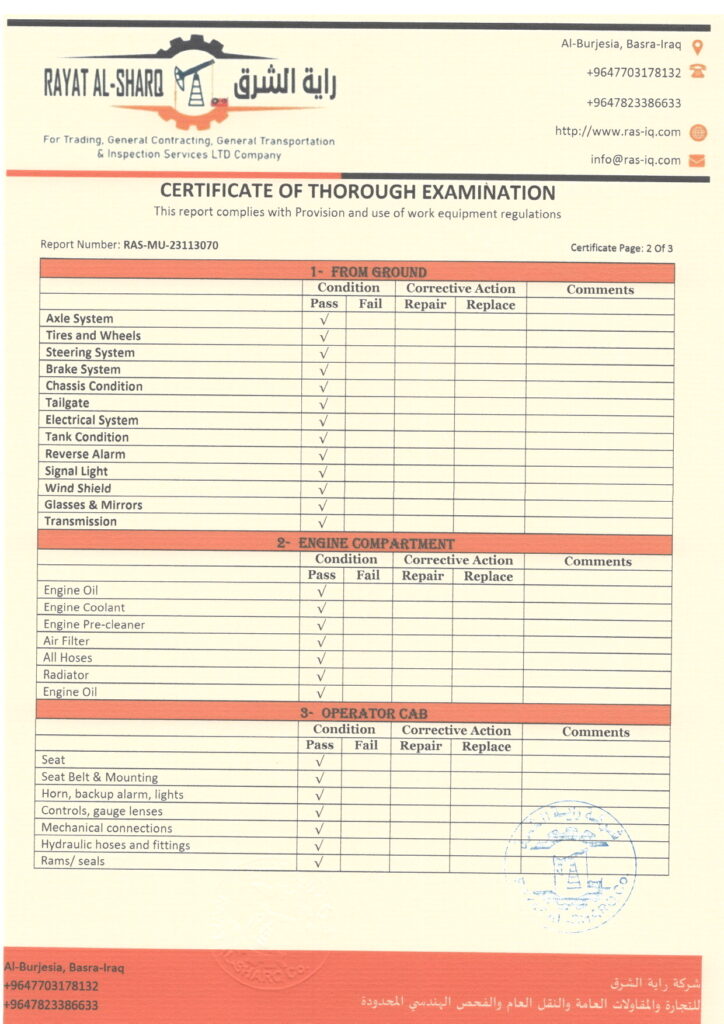 LIFTING INSPECTION