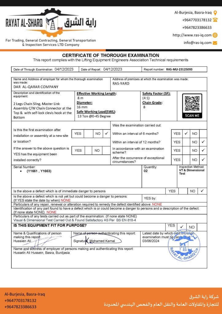 LIFTING INSPECTION