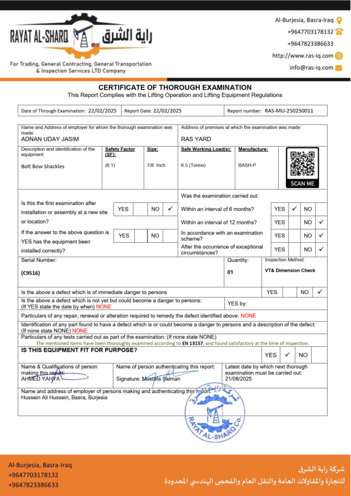 LIFTING INSPECTION