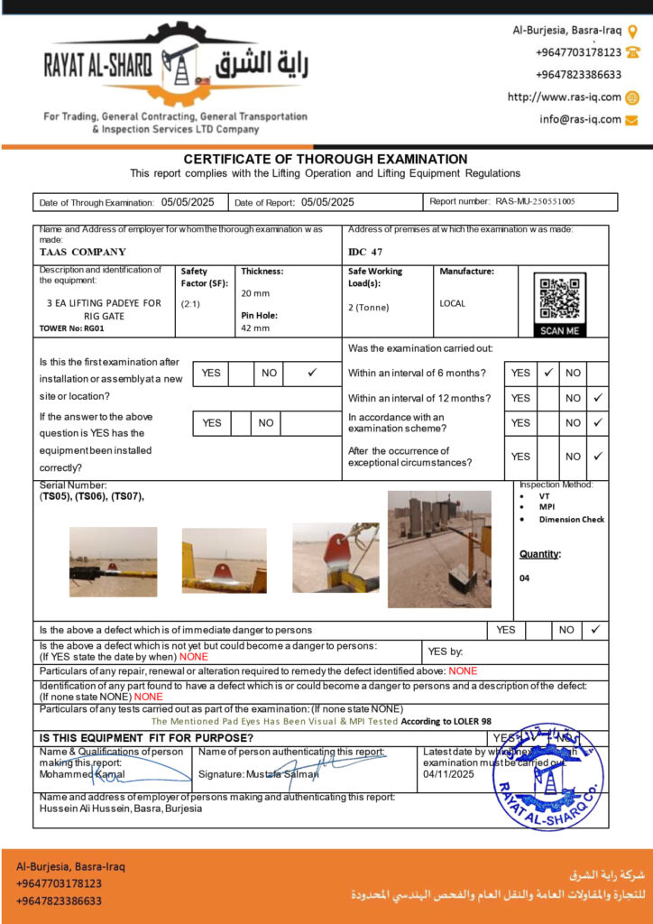 LIFTING INSPECTION