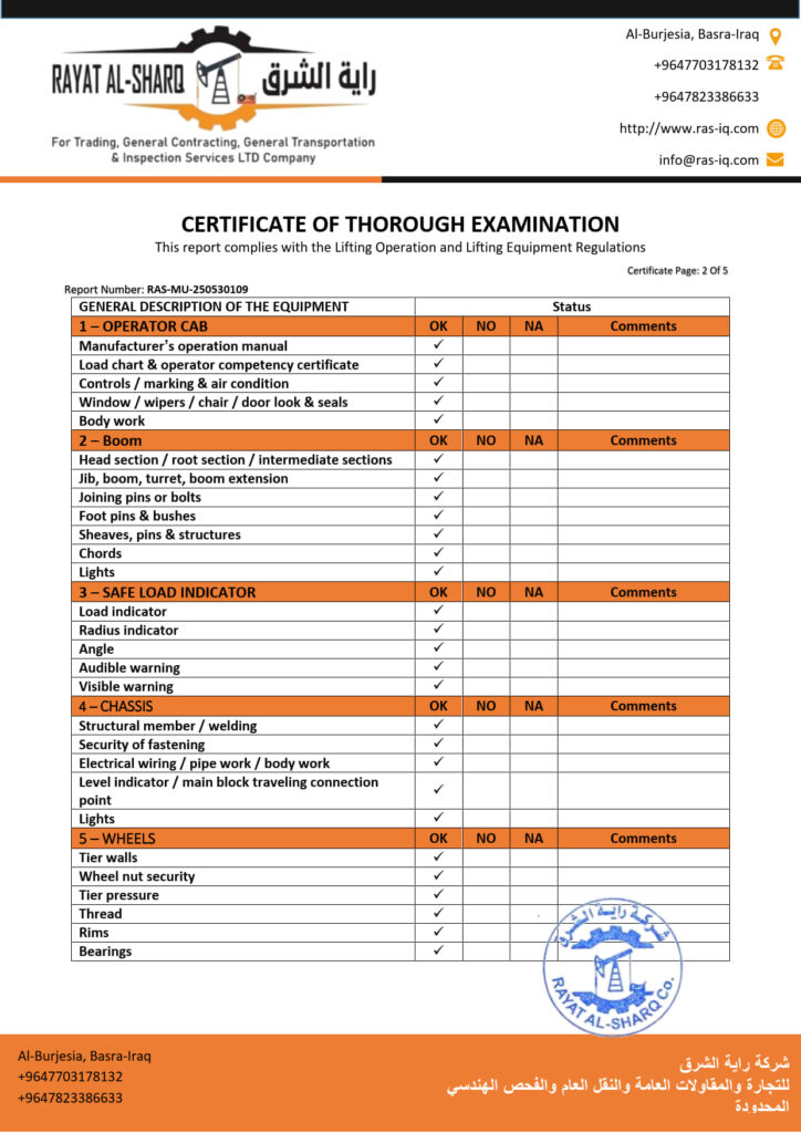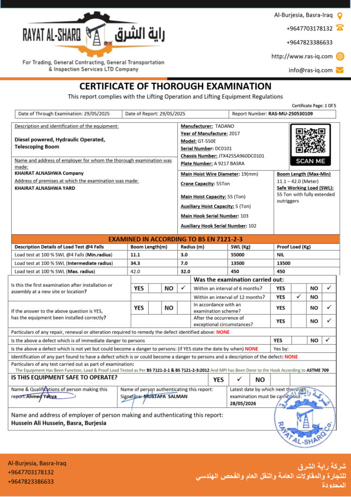 LIFTING INSPECTION