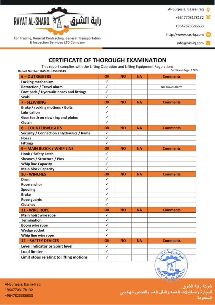 LIFTING INSPECTION