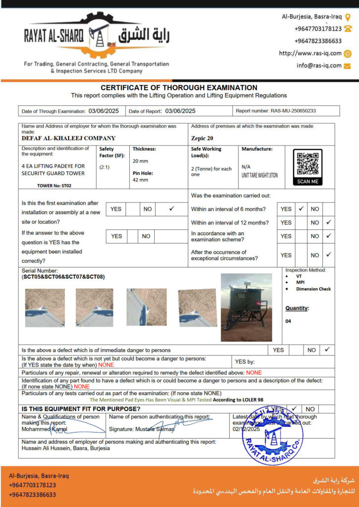 LIFTING INSPECTION