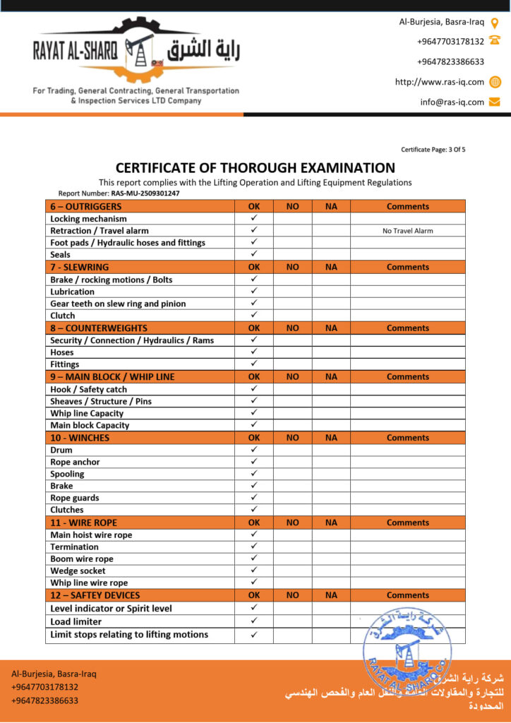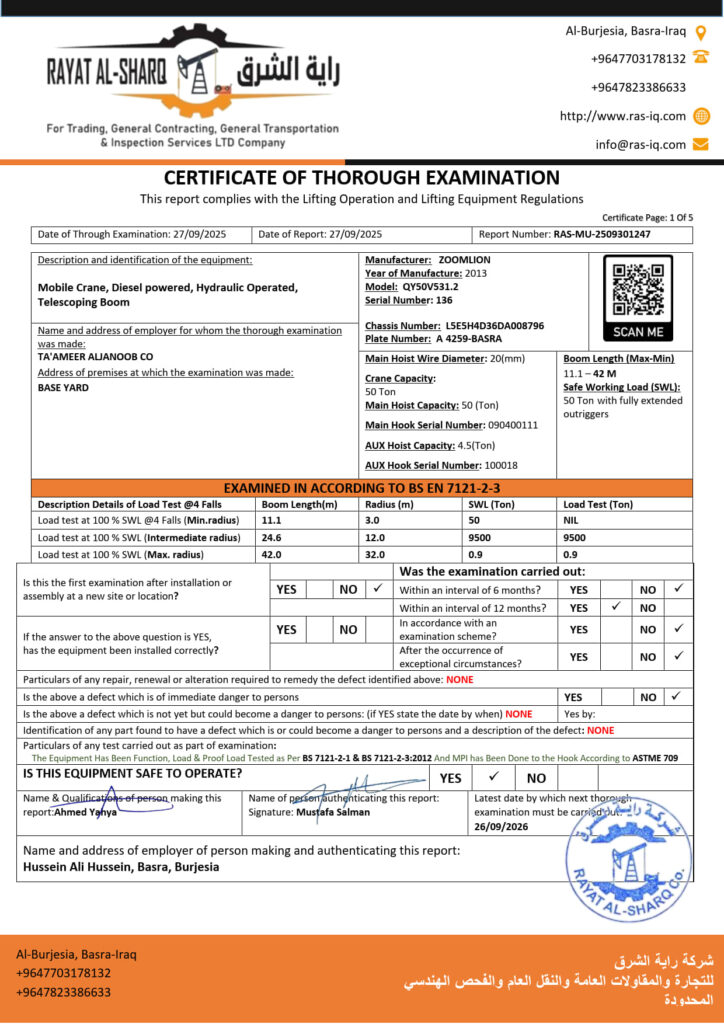 LIFTING INSPECTION