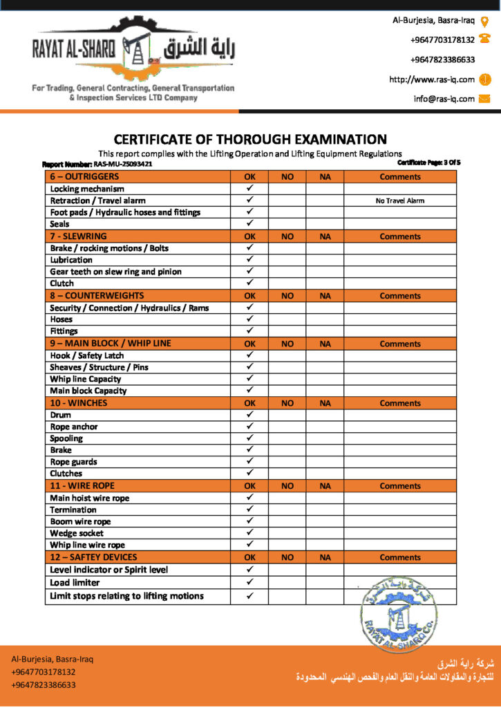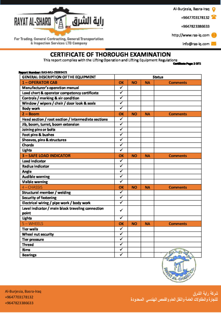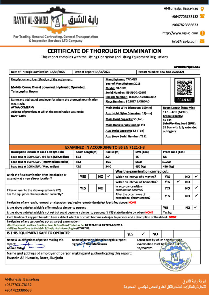 LIFTING INSPECTION